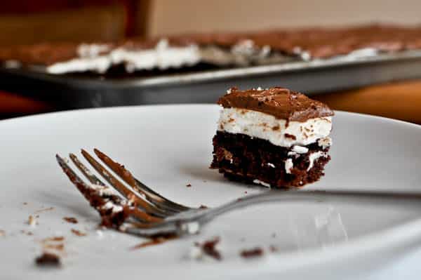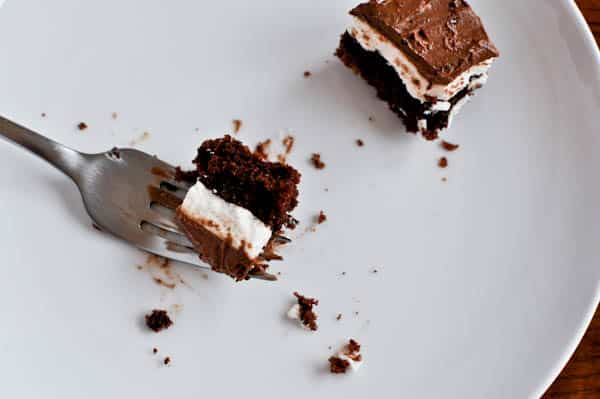 I highly suggest throwing it in the fridge or freezer. Mr. How Sweet is usually the one in this house that loves his cake and frosting chilled, but I have to admit that this cake takes the cake. Especially when chilled. It is pure heaven.