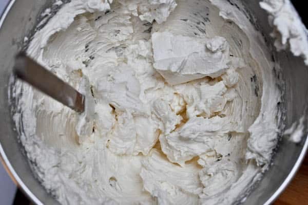 Cooling the frosting down in the freezer seemed to help with the thickness some, but it probably wouldn’t have lasted. Since I had nothing to lose, I just decided to beat it on the highest speed for a while and see what happened. Imagine my delight when, several minutes later, my frosting had thickened up, combined, and looked and felt totally gorgeous!