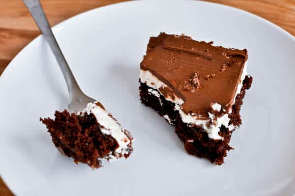 This cake is evil. My husband says so too. Once you start eating it, you can’t stop. It doesn’t look like anything spectacular, but it is. Especially when it is chilled.