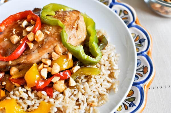 Skillet Chicken with Peppers and Peanuts I howsweeteats.com
