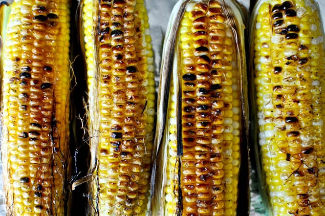 Grilled corn is the bees knees. It gets charred and caramely and sweet and sugary and melts in your mouth like only buttery corn off the cob can. It took us about 16 weeks to learn how to properly grill it… but boy was it worth it. Last June we nearly grilled it bare and was left with corn that tasted like a delicious ashtray. In July we feared the grill grates and cooked it waaaay too long on waaaay too low heat and ended up with plain, boring corn on the cob. In August, we got things right for a hot minute and mastered the perfect bite: sweet bicolor corn with a few charred specks of caramel. Perfection.