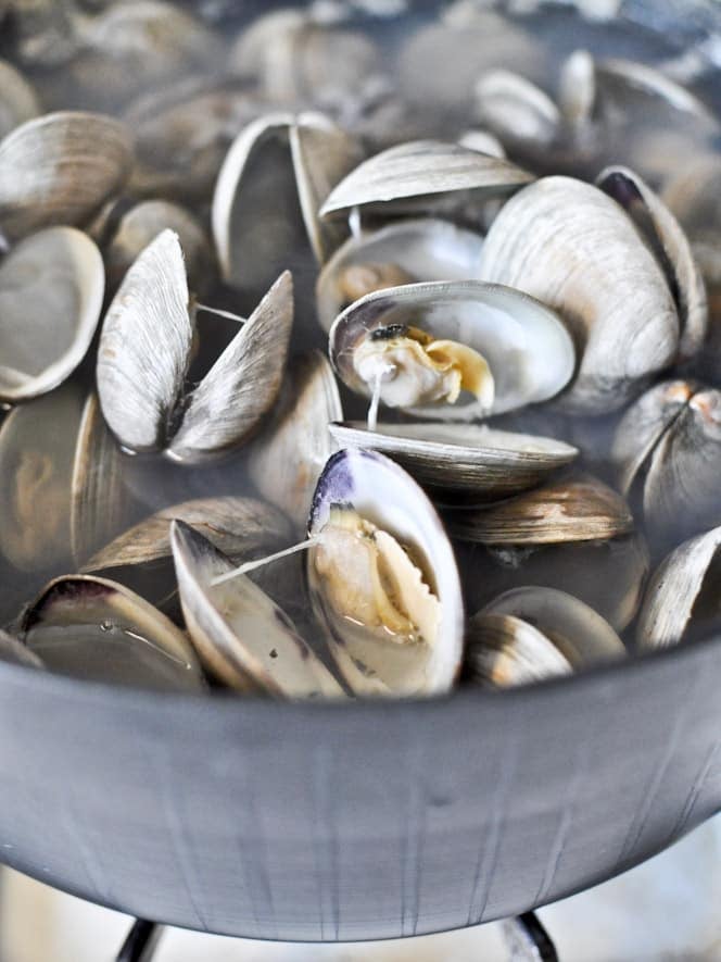 Note: you can definitely used canned chopped clams (I’d probably use 4 cans) and water or fish/clam/seafood stock to replace the liquid.