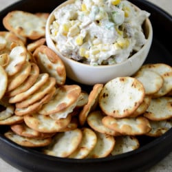 This dip looks delicious. Are those Pita Bite crackers? I just discovered those this past week and love them. They would be perfect for the dip. For the record, I love celery as an ingredient in various recipes. Sorry, kids, you’re missing out!