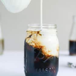 - The next morning, strain the coffee through a few layers of cheesecloth or a coffee filter. It’s key to reduce the granules. Now you have your coffee! Fill a glass with ice, add your desired amount of coffee and cream/milk – then go to town with the syrups. Note: the syrups should be stored in a sealed container in the fridge. They should last a week or two!
