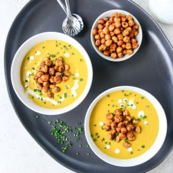 Smoked Gruyere Butternut Soup with Spicy Chickpeas.