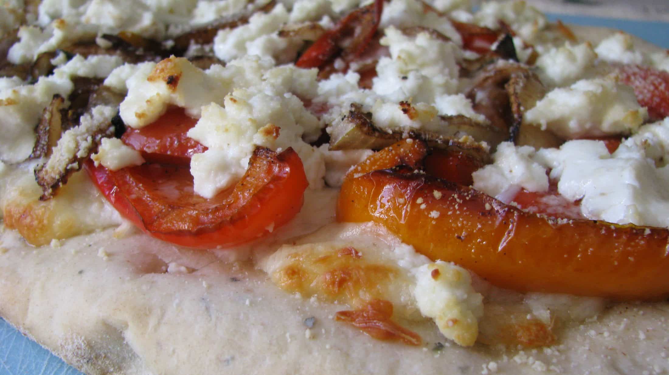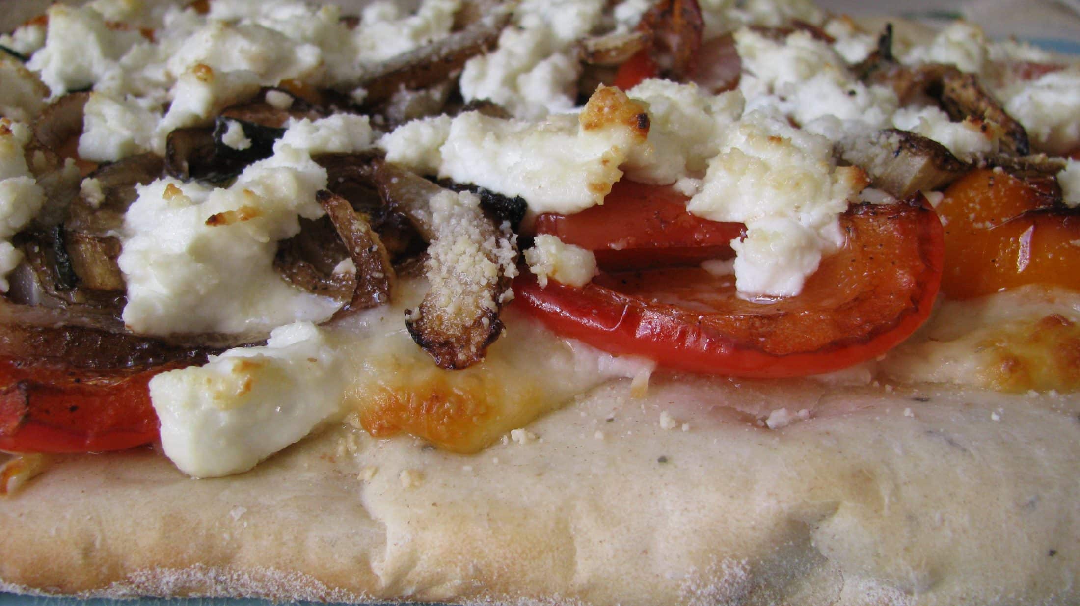 Roasted Veggies and Goat Cheese Pizza