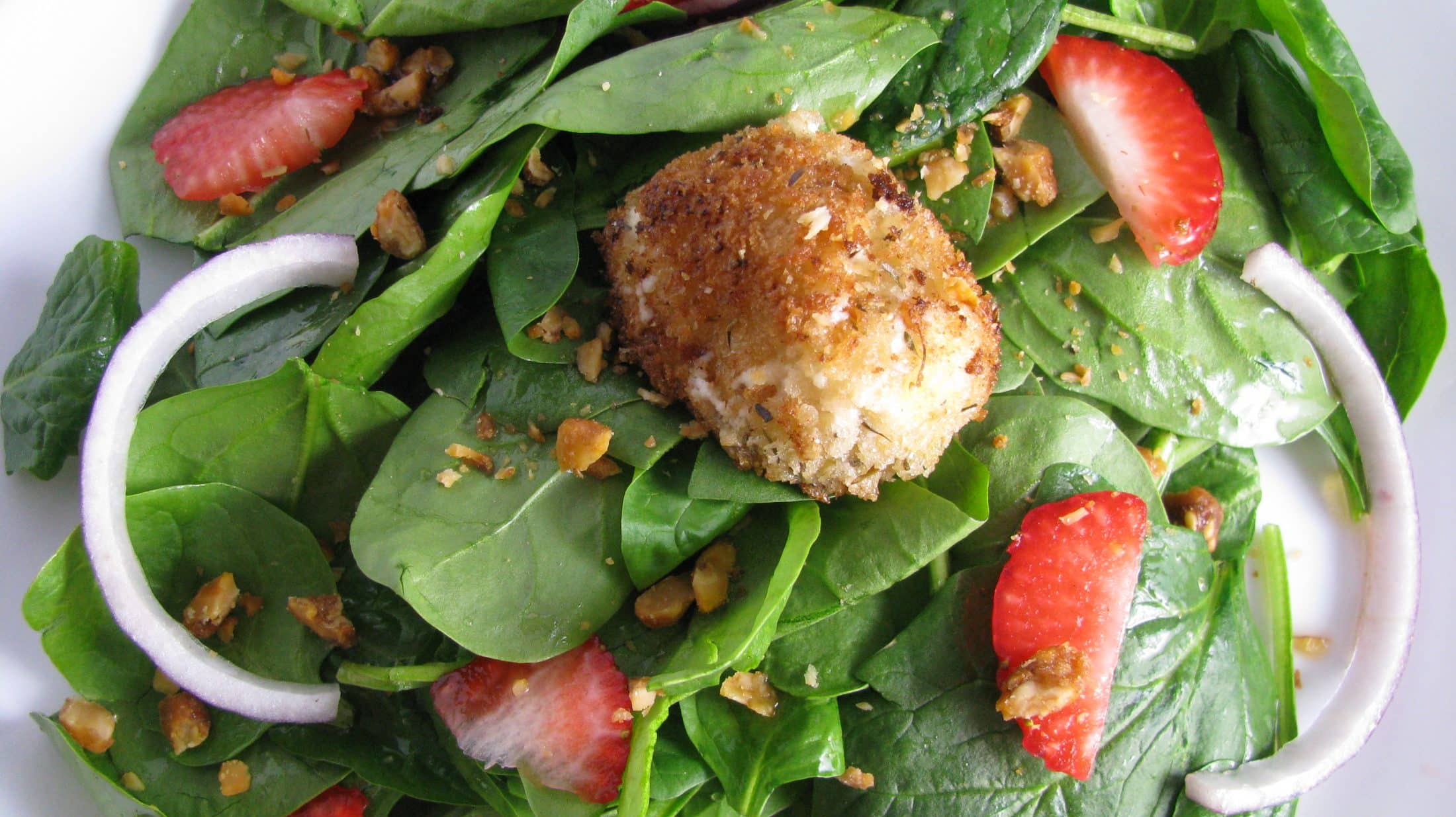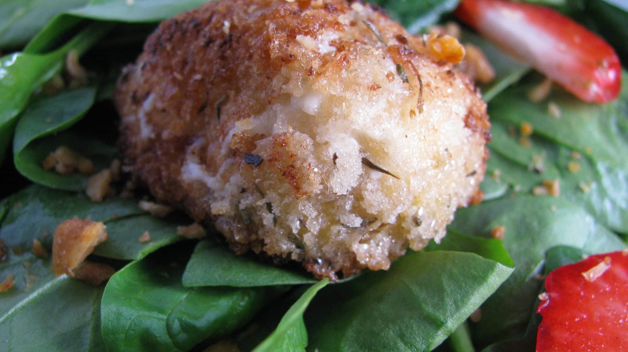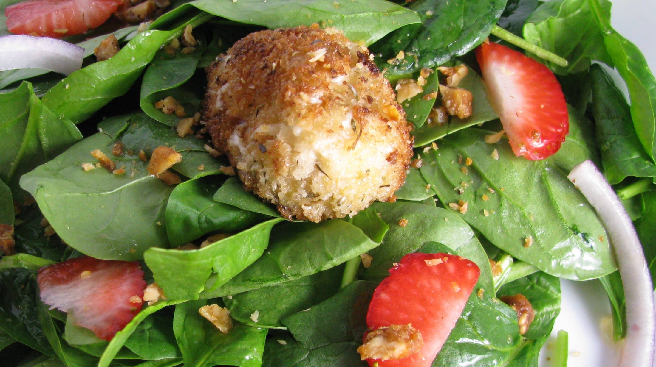 Warm Herb-Crusted Goat Cheese Spinach Salad.