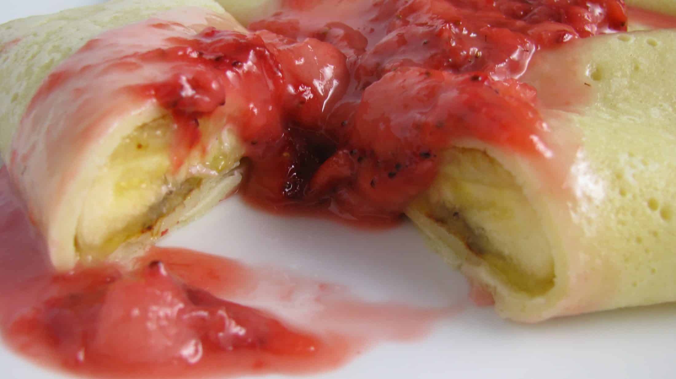 Grilled Banana Crepes with Fresh Strawberry Cream