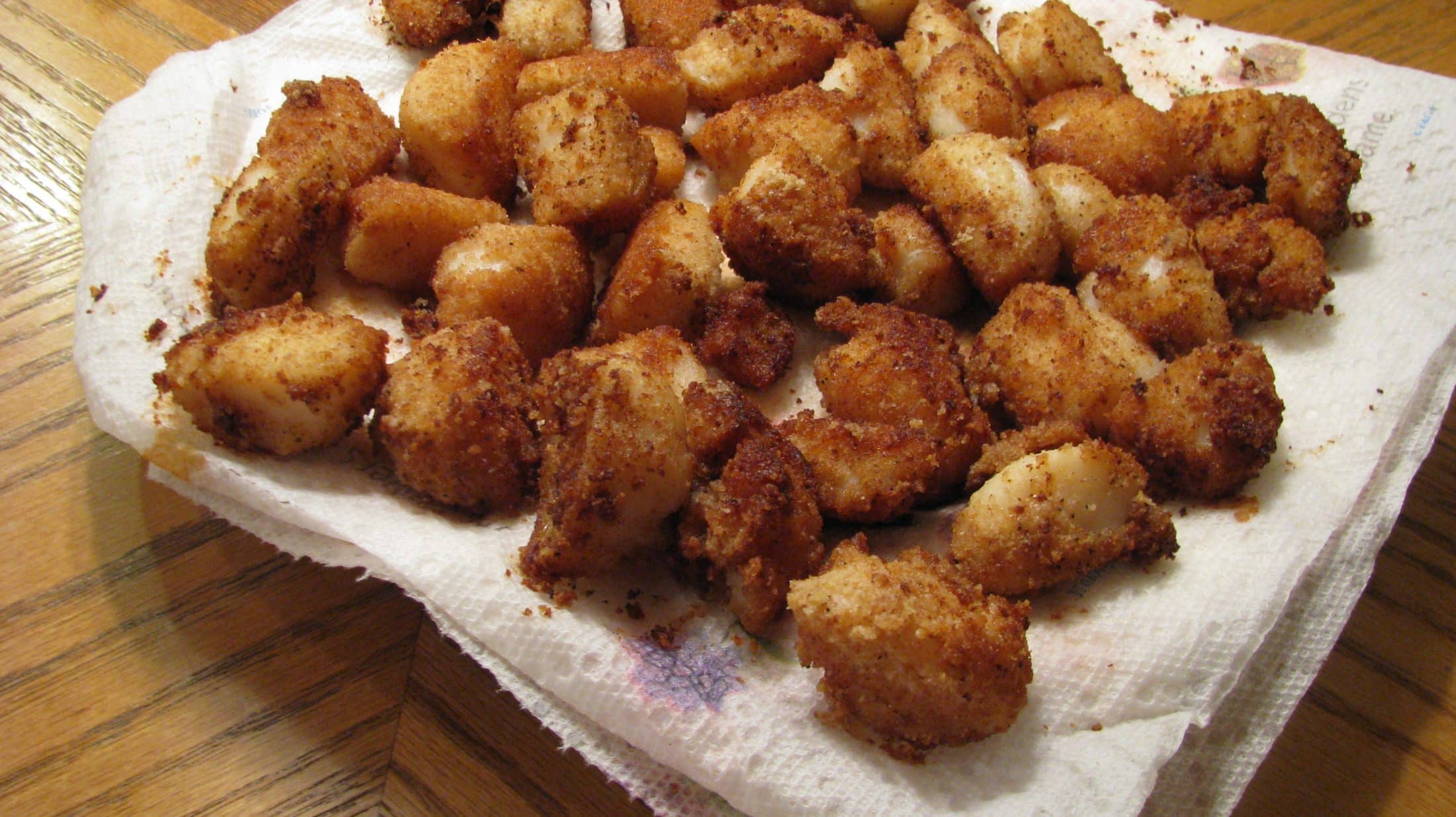 . . .breaded scallops and scallops in wine and bread crumbs. . .
