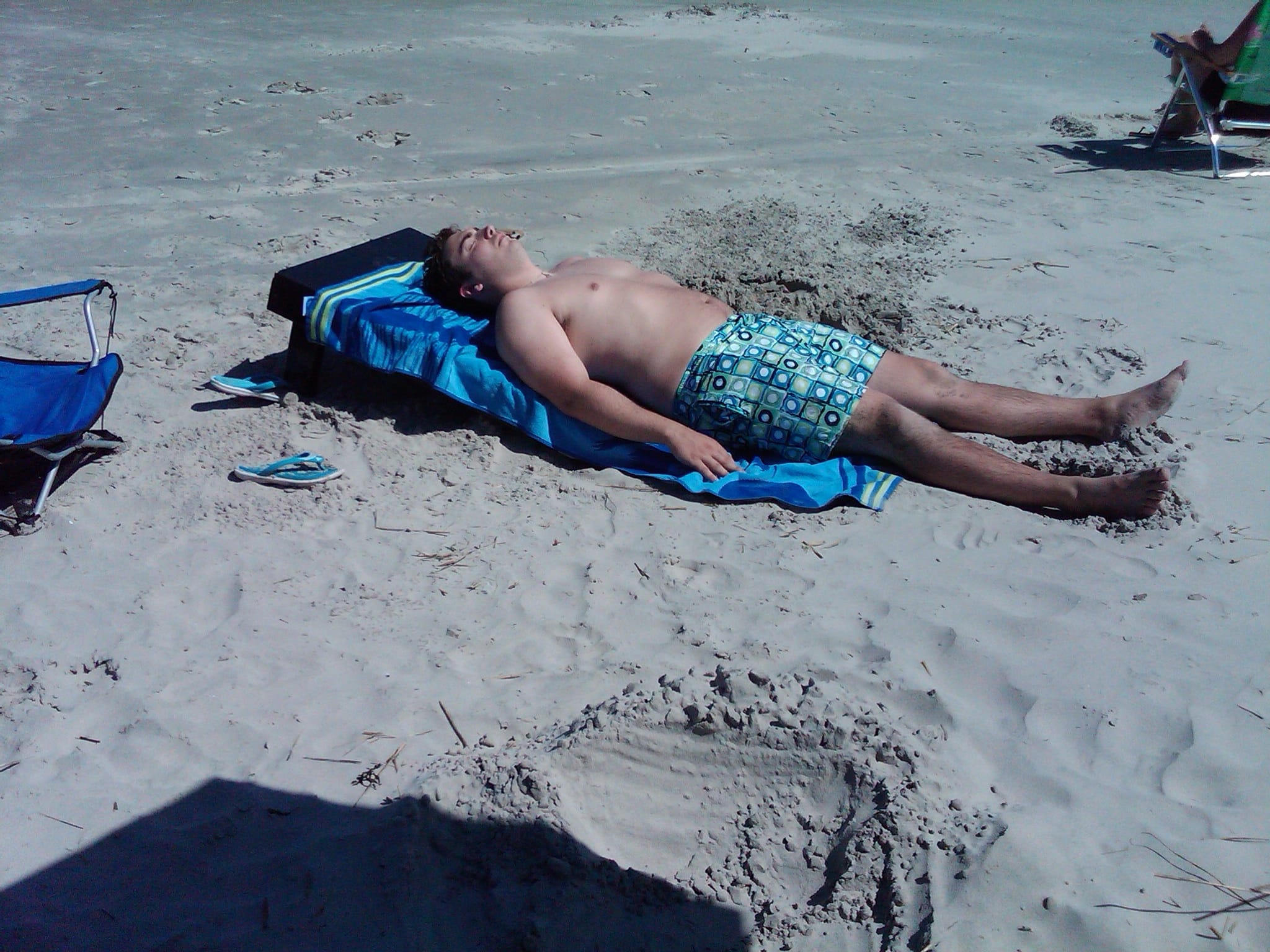 I snapped a terrible dark picture of Mr. How Sweet and I, unshowered and dirty from the beach, showing off more of my despicable photography skills.