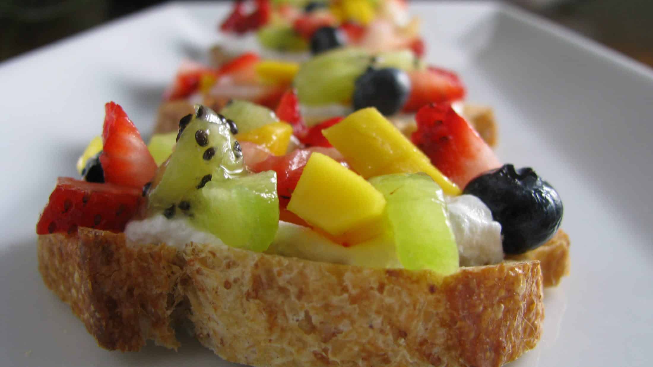 Snacks: Bacon-Wrapped Scallops, Gorgonzola Popovers, Fruit BruschettaBacon-Gorgonzola Stuffed Baby Red Potatoes, Gorgonzola Stuffed Olives, Roasted Garlic & White Bean Hummus