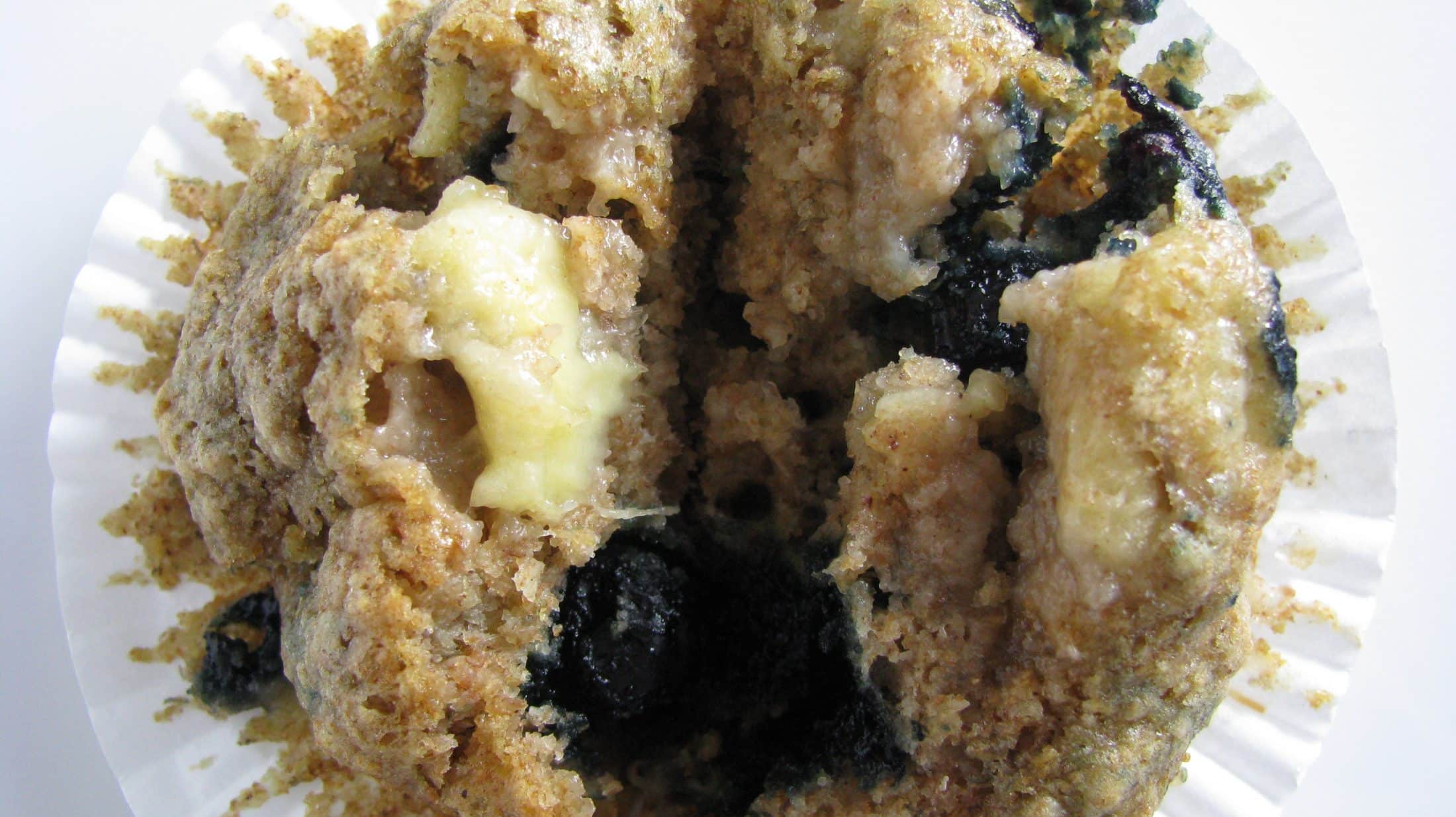 Why are there not any of these muffins in my house right this instant? Why must the banana and blueberries look so perfect together? And more importantly, why isn’t there a giant slab of melty butter right smack in the middle?