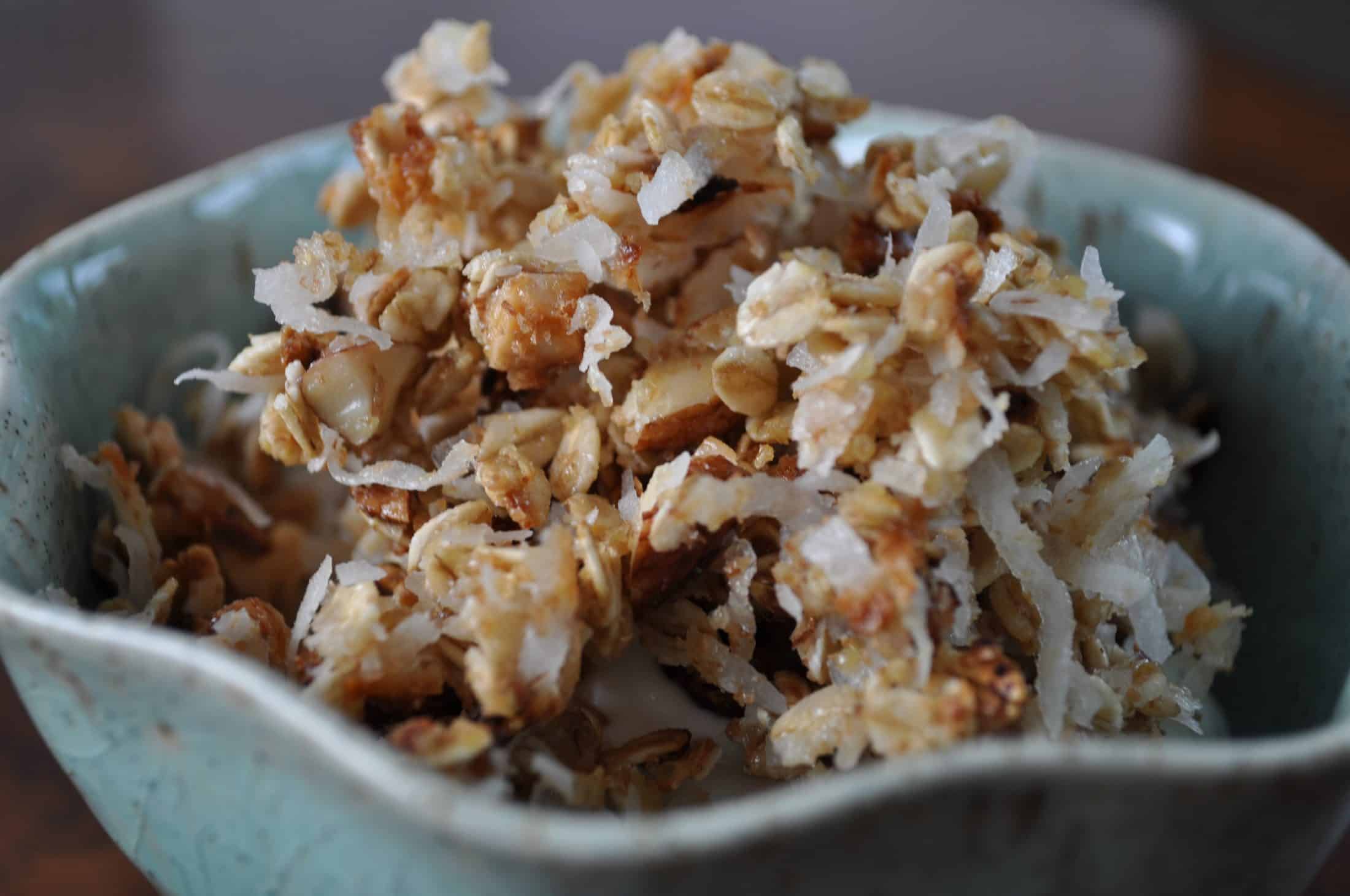 Last night, I found myself elbows deep in macaroon granola. Moping around in my elastic-waistband pants, I shoveled handfuls from the pan to my mouth. Then I proceeded to watch a Jersey Shore marathon, make 3 more batches of granola, clean our bathrooms with a toothbrush and dream about spray tans.