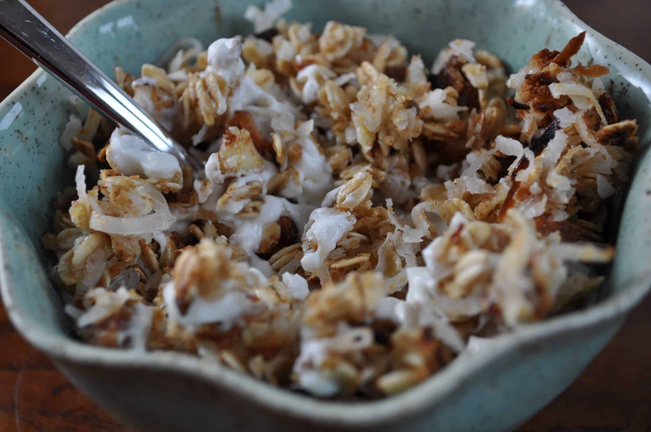 I didn’t have vanilla bean (doubled the extract), coconut extract (used almond instead) or coconut butter (used coconut oil) and still this granola was INSANELY good!…and I’ve never considered myself a coconut lover. Just the right amount of sweet, salt and crunch. I devoured it by myself in 2.5 days – my rationalization was swimming a mile yesterday and biking for 22 miles today to mitigate the damage to this grandma’s thighs. Problem is, my granola is GONE and I am craving MORE. Thanks for a great recipe, Jessica. I am really enjoying your humor.