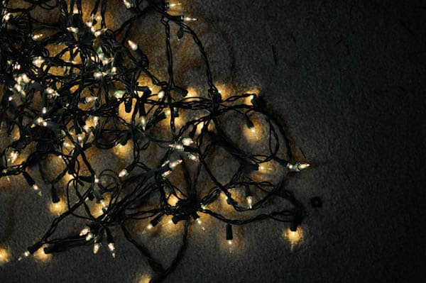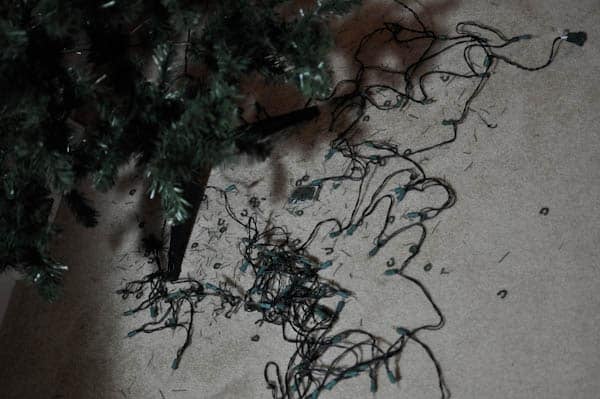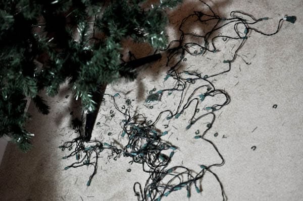 Earlier this morning, Mr. How Sweet took the strand of lights off the pre-lit tree. The plan was to just add on another strand that we had. Luckily, we have hundreds since we still have a whole other tree to decorate that is not pre-lit. Well, the lights wouldn’t plug into each other, which is a major disaster since the burnt out strand was in the middle of the tree.