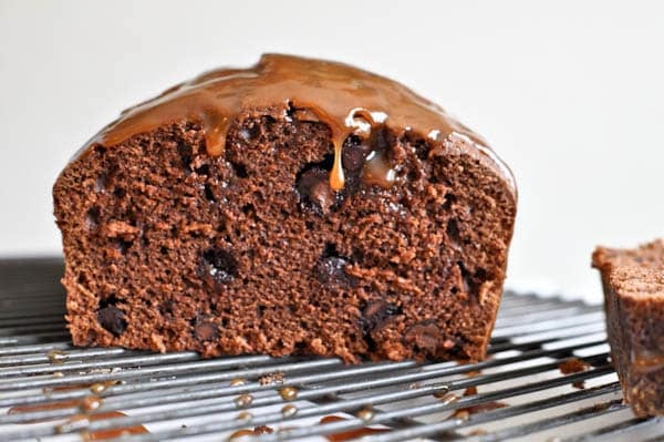 Salty Caramel Drenched Double Chocolate Loaf Cake I howsweeteats.com