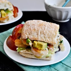 I thought maybe I’d grown out of my crispy shrimp phase when it had been 3 whole days since I’d eaten those tacos, but then I found these personal ciabatta sandwich rolls at my grocery store and they said… “stuff some crispy shrimp into my fat, fluffy rolls please. Please. Do it now!” Seriously. I do what I’m told.