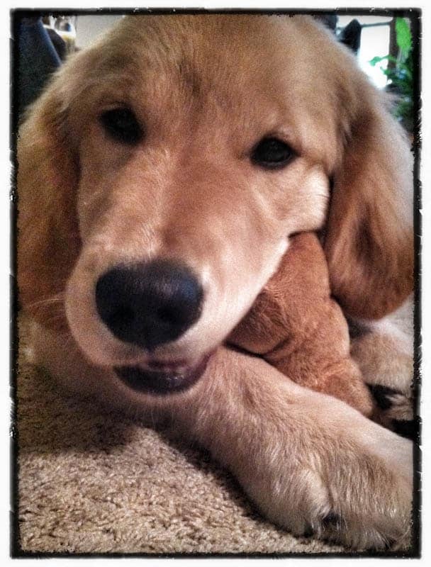 8. Here’s Bella face. Chewing on… something. Probably one of my shoes.*