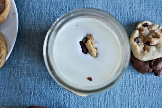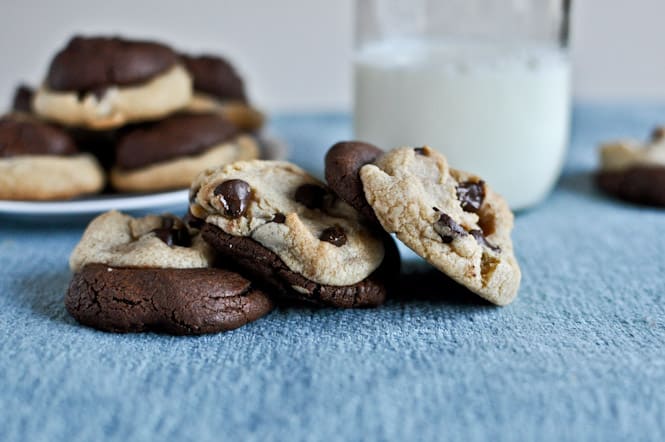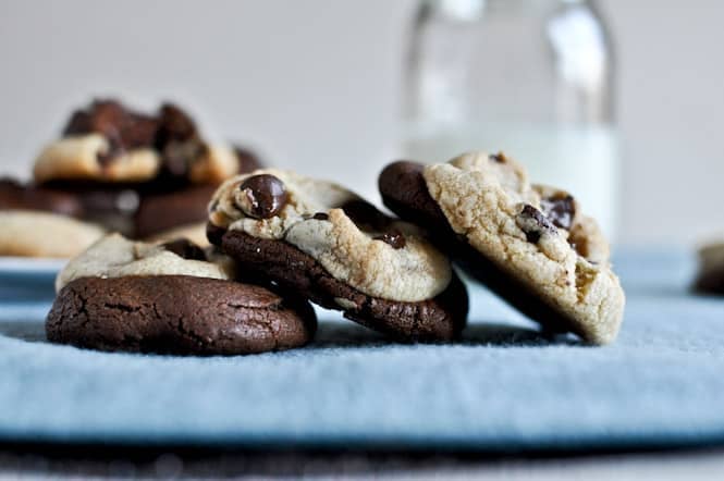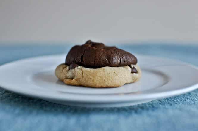 In order to solve a common I-want-a-chocolate-CHOCOLATE-cookie-but-he-wants-a-plain-chocolate chip-cookie dilemma that happens like, every single weekend here… I made both. On top of each other.