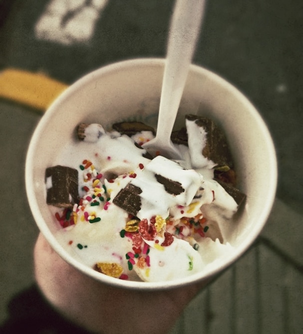5. On the plane ride home I felt so wretched from all of the junk I ingested that I swore I’d eat nothing but apples for three days. Since we all know it wouldn’t be vegetables. Then I got frozen yogurt.