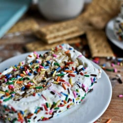 Ever since my friend Naomi made this snickers icebox cake, I’ve been dying to make one of my own. I’ve actually been dying to make that one too, since Snickers bars are my life, but I thought I’d take the easy way out and start with more sprinkles than anyone on Earth could handle.