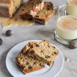Eggnog Chocolate Chip Bread with Brown Butter Eggnog Glaze