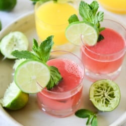 I find agua fresca to be insanely refreshing, which is probably it’s purpose or something. The mint and the limes add the perfect little kick and since it’s made with fruit, it’s healthy. You are drinking your nutrients, people. Get down with it.