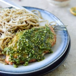 Pistachio Pesto Chicken with Whole Wheat Spaghetti