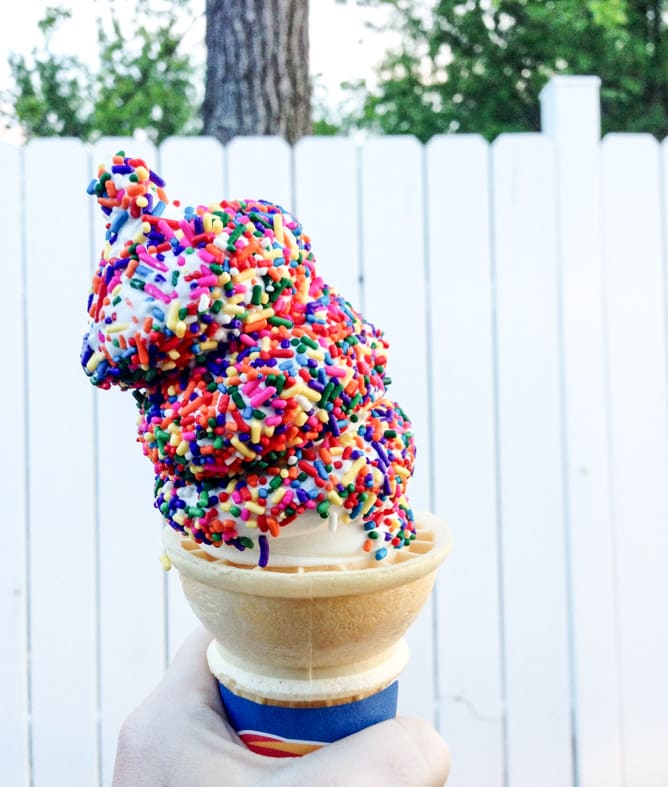 1. It seriously amazes me how rainbow sprinkles completely change a boring vanilla cone. Is it all in my head? A mental thing? It’s real.