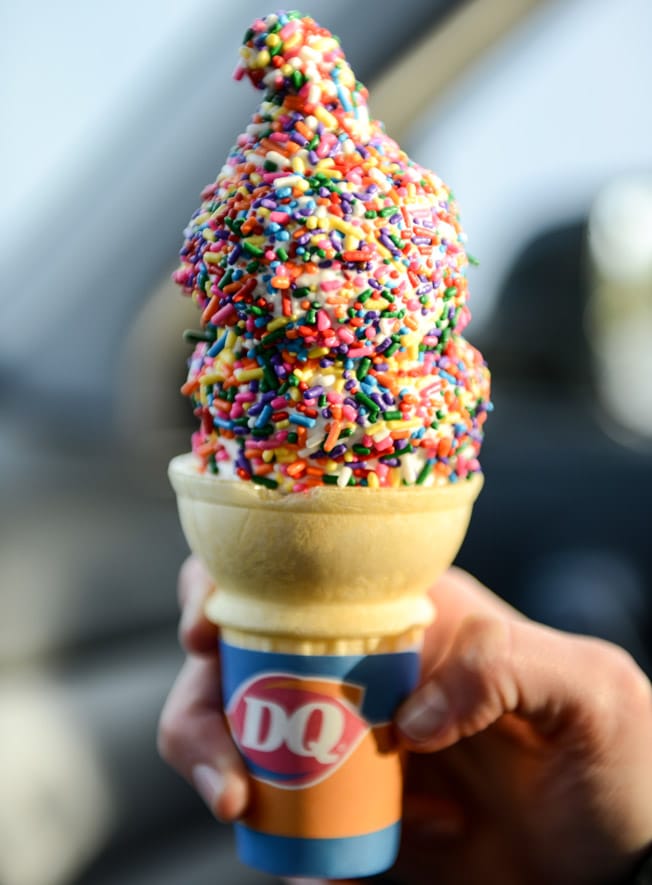 LOVE that Dq cone shot and all those sprinkles and the joyful runner and the donuts and the whole thing…makes me smile. Thank you!
