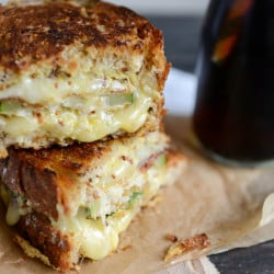 One plain grilled cheese, made with regular bread (whatever the heck that may be) and a side of pickles always leaves me wanting more. Like more in the sense of an entire second grilled cheese. Or at least three fourths of one. I’ve pimped out this belief on the facebook, the twitter and the instagram for years now with pictures of my drippy, crunchy sandwiches. It’s just making it’s way here.
