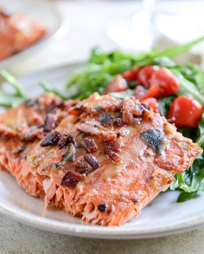 Ohhhh, yum! I love the flavor combination you used!! And ohhhh, the bacon on top! Yes please!!! Gosh I have’t had salmon in a long time. You have inspired me! I need to make some salmon this week and add bacon to it!!!! Have a great week Jessica!
