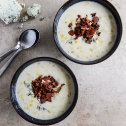 Cheesy Corn Chowder with Bacon + Gorgonzola