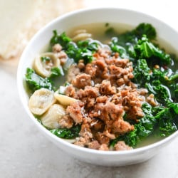 Spicy Sausage, Kale and Whole Wheat Orecchiette Soup