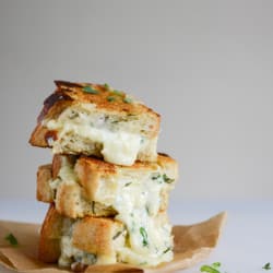 Oh oh. You can totally add tomatoes if youβd like. In any form. You can add some roasted tomatoes inside the sandwich, or roasted a few cherry tomatoes and pile them on top. You can even serve a tomato jam or marinara for dipping, though that kind of defeats the whole white pizza thing.
