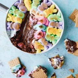 How can I manipulate you to into throwing your Easter candy in a skillet with chocolate chips and convincing your friends that it’s dessert? Pull up a seat and grab a graham cracker.