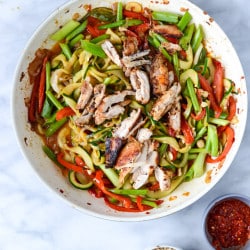 Thai Drunken Zucchini Noodles with Spicy Honey Chicken