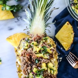 I want to devour that pineapple bowl!! Drooling over that pulled pork. Same here, not telling my husband or avoiding to tell him the “weird ingredients” a recipe requires is the key for him to try new things and he ends up enjoying it.