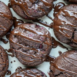 Super fudgy, chocolatey, rich cookies that are studded with the most delicious sweet raspberries.