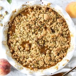 Pistachio peach caramel crumble to the rescue this week. Note that I say THIS week.
