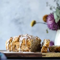 Here’s the key: brown butter glaze. The brown butter glaze makes up for any lack of dipping. I also think that a cinnamon butter would be AMAZING when spread on top, so there is that too. Sometimes beer bread is just so, well… bready, that is can almost occasionally verge on the dry side when you have a big mouthful. Hence the reason for dipping! And the glaze and butter.