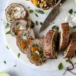 Butternut, Apple and Goat Cheese Stuffed Pork Tenderloin.