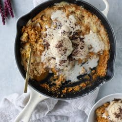 for some reason i don’t think oatmeal would be that great on this… when i think oatmeal i think of crisps and crumbles and this is really different from that? but i didn’t mean to freak you out about the texture! it’s more like a cake than anything?
