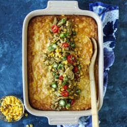 This corn soufflé, aka corn pudding or corn casserole, has been on my radar for YEARS. In fact, so many of you have told me about a version of this delicious recipe and while I was always intrigued, I never bit. All puns intended.