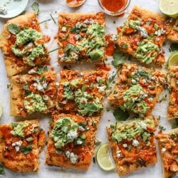 39 Comments on “Guacamole Buffalo Chicken Pizza.”