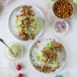 crispy chickpea wedge salads with avocado ranch I howsweeteats.com #wedge #salad #chickpeas #avocado #ranch #vegetarian