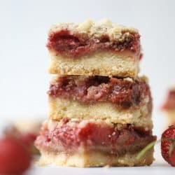 I’ve got a special treat for you today! This recipe is one of my fave fave faaaaavorites and it’s straight out of The Pretty Dish! These strawberry cobbler bars are a take on the blueberry peach version from my cookbook and they are SO GOOD.