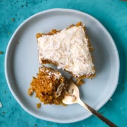 I made a pumpkin coconut bread years ago and was totally surprised by how much I liked the combination. I love that you took it one step further and spread coconut icing and shredded coconut over the top of this cake. I feel like it’s two seasons colliding–summer and fall. Which I also feels like what happens in September/October, so it’s completely appropriate!