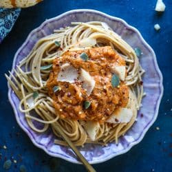 It’s comforting. It’s satisfying. It can be used in so many ways: as a traditional pasta sauce, as a sauce on zoodles, as a base for mini pita pizzas – so many things. You could even throw it on top of some butternut noodles for squash inception.