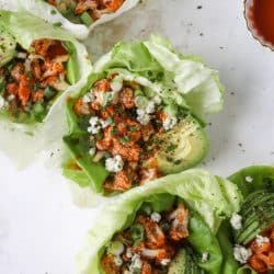 Another thing I love about this dish is that I can use the lettuce cups to serve both buffalo chicken AND the buffalo cauliflower.